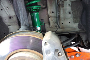 ノーマルじゃあまりにも車高が高くて、タイヤとフェンダーの隙間にげんこつが入りそうなほどだったのですが、ファミリーカーなので、嫁に絶対にバレずに、CDの音飛びも無しで、でも友人とミニサーキットくらいなら、お茶を濁す程度に走れる車にしたいな、というと思いで、オークションの怪しいブランドよりは、日本製の昔からあるテインをチョイスしました。