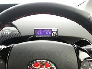 コントローラサイズは、コンパクトにまとめられてて、設置場所を選ばない形をしています。でも、プリウスなんかの内装は結構スラントしている場所ばかりで、コントローラ事態が斜めになる状態で取り付けないとダメで、結局ステアリングコラム上にアクリル板で台座を作りそこに両面テープで、設置しました。